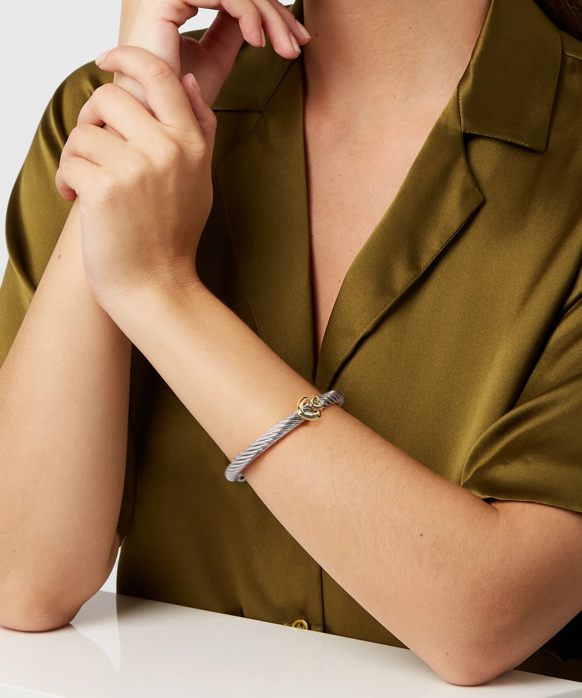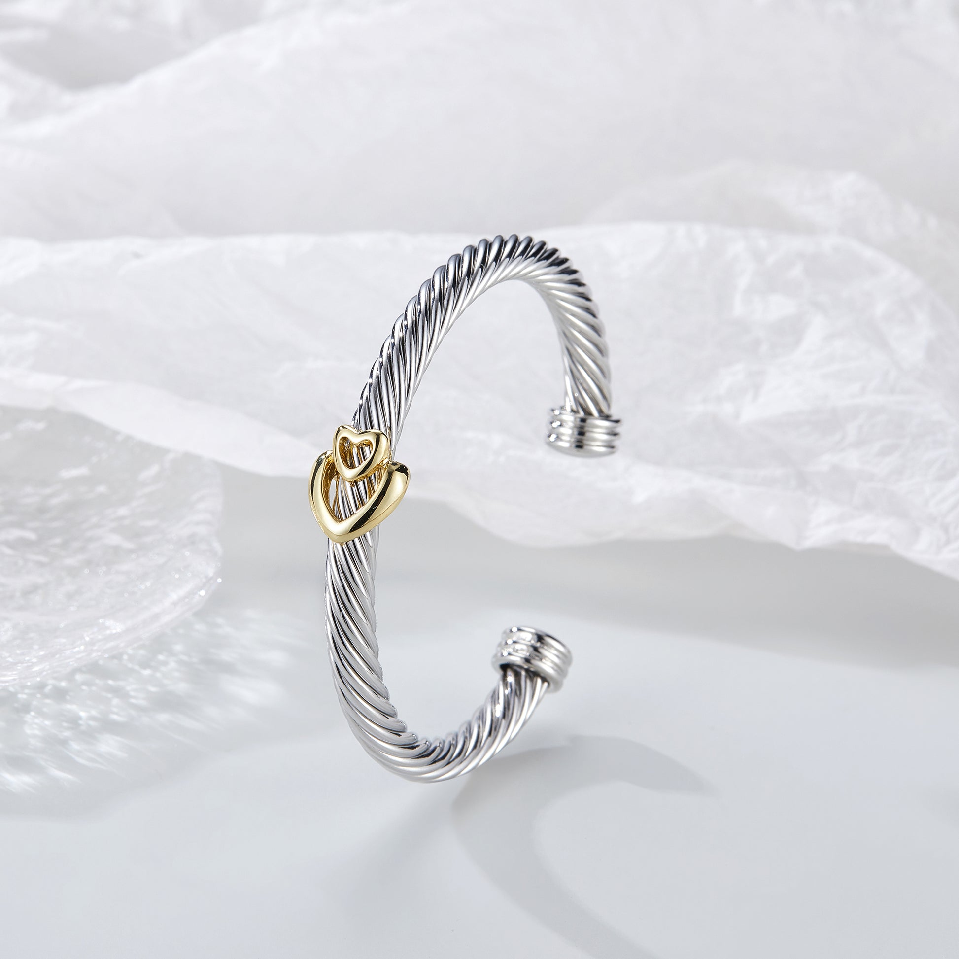 Aprilery Cuff Bracelet for Women Silver Wire Twisted Two Tone Cable Bracelet Gold Heart Cuff Bangle Vintage Bracelets Jewelry Gifts